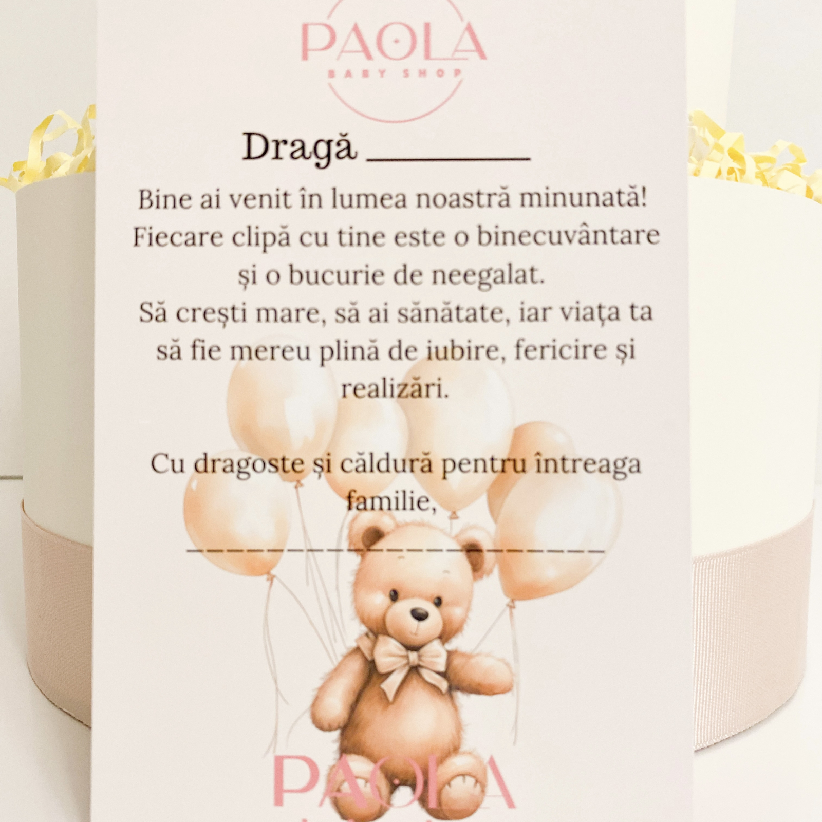 Un cadou minunat pentru mămici și bebeluși, ideal pentru baby shower-uri, botezuri și primele momente speciale ale unei fetițe.