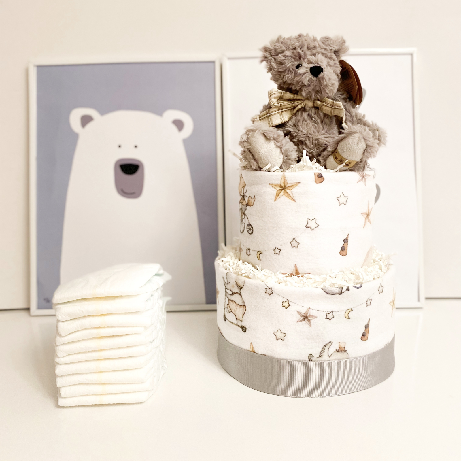 Acest tort din scutece Pampers Premium Care este o alegere perfectă pentru a surprinde o proaspătă mămică sau pentru a dărui ceva unic la un baby shower, botez sau vizită la maternitate.